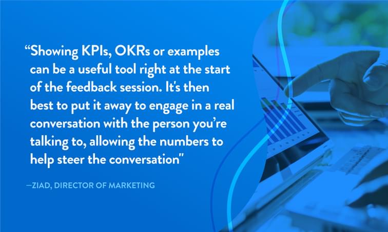 Get specific with examples and suggestions - It’s all about constructive feedback. “Your presentation is missing information” isn’t very helpful. Instead, “your presentation is missing key information on slide five about our new human resources policies, which you’ll find in the portal” is specific and helpful.