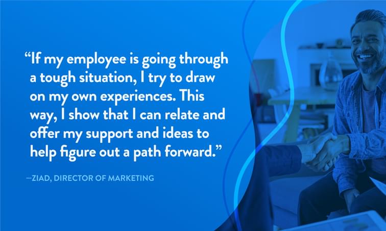 Be open about your own experience: Many managers have faced similar challenges or are facing them right now, such as difficulties adapting to remote work. It’s a good idea to share what you are experiencing with your team as a way to build greater trust.