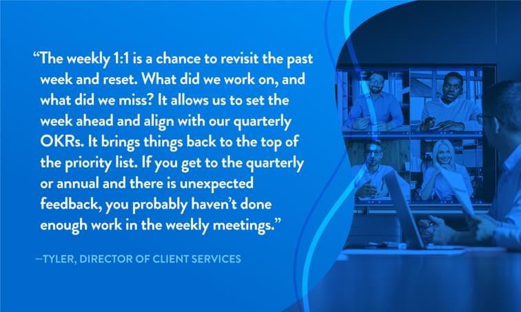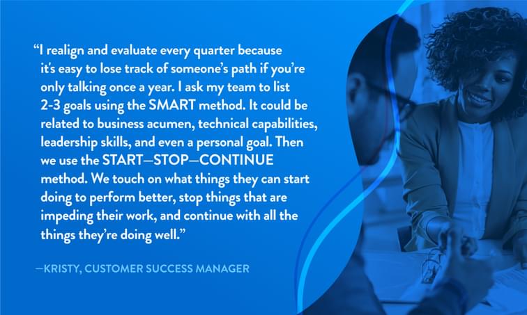 Rather than wait an entire year, it’s way more effective for your employees to receive feedback in real-time when it’s relevant and timely. If you incorporate continuous feedback, the year-end chat will be less stressful, and your team will be able to course-correct as they go.