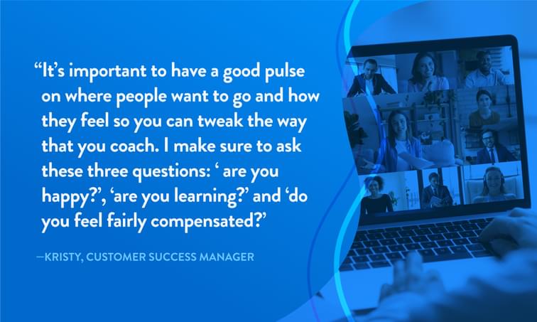 Schedule Regular & Frequent Video Calls: Every week, my manager and I have a recurring 1:1 call using our company’s video conferencing tool Huddle. The chats give me a chance to talk about recent wins, challenges and help me figure out goals and areas of improvement.